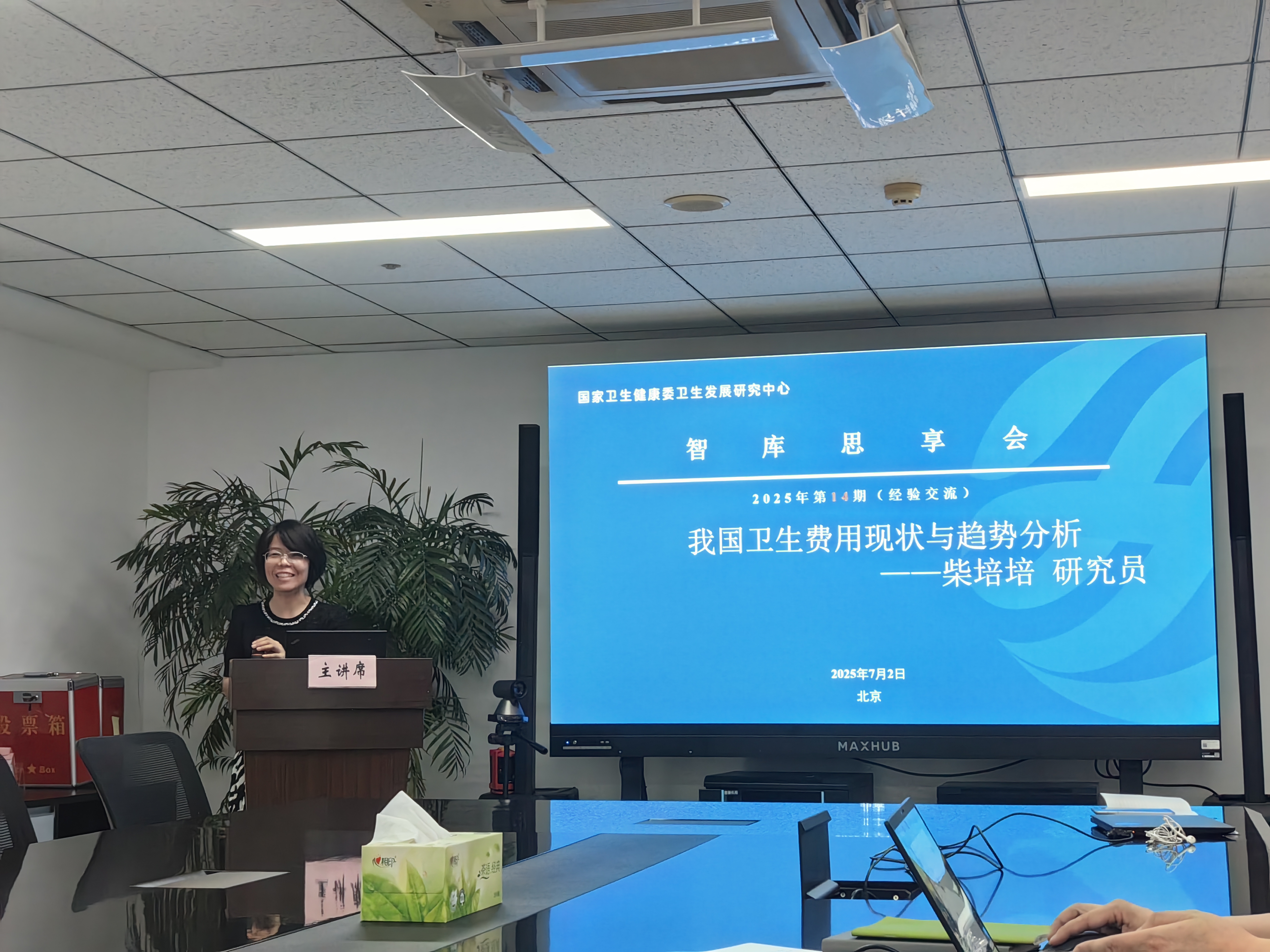 7月2日,卫生发展中心召开第14期“智库思享会”,健康经济与保障研究部健康费用研究室柴培培研究员就我国卫生费用现状与趋势分析作专题报告。卫生发展中心党委书记、主任诸宏明同志主持,全体干部职工参加会议。